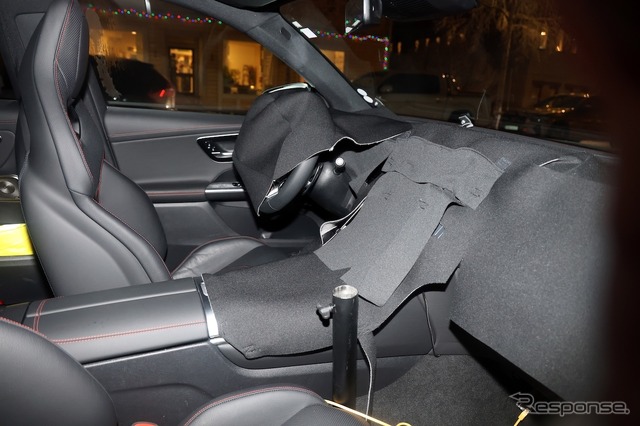 内装の写真を撮影したが、ステアリングホイールとダッシュボードが黒い布で覆われているため、詳細はほとんど分からない。とはいえ、『CLA』でデビューした新しいメルセデスベンツ・オペレーティングシステムを搭載した、最新のインフォテインメントシステムが採用される可能性は高い。また、トリムや内装のアップデートに加え、物理スイッチ付きのステアリングホイールも刷新される可能性がある。