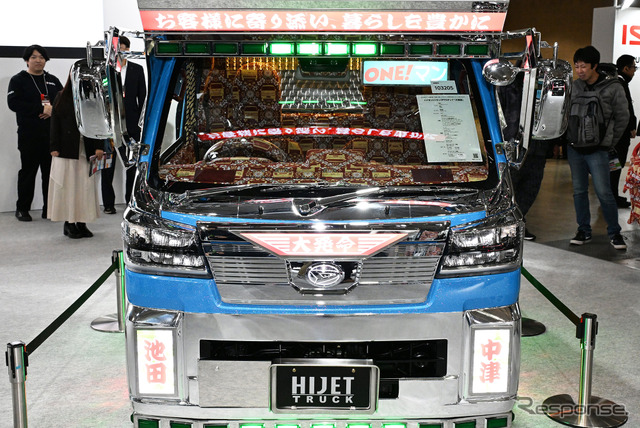 ダイハツ工業は「東京オートサロン2026」で“わくわく・おどろきを詰め込んだ”軽自動車を多数出展。中でも会場の注目を集めていたのが、往年の“デコトラ”を思わせる『ハイゼット トラック PTO ダンプ 大発命(ダイハツメイ)』だ。SNSでは、「ぶっとんでてすこ」「ダイハツさん、やりますな~」など、注目が集まっている。