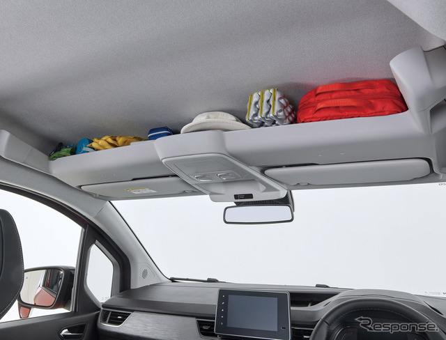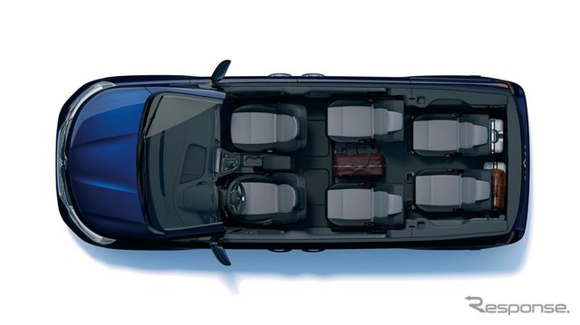 ラゲッジ容量は7人乗車時で500リットル、3列目シートを取り外すと1340リットル、2・3列目を取り外すと3,050リットルまで拡大できる。また、日本専用で、カングーのアイコンであダブルバックドアとブラックバンパーを装備。ダブルバックドアは約90度でロックがかかり、ロックを外すと約180度まで開く。荷室床面の地上高は594mmと低く、重い荷物も積み込みやすい設計だ。