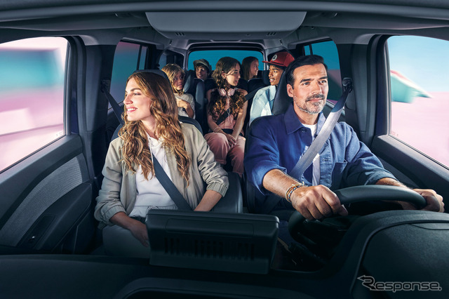 ホイールベースの延長によりスライドドアの開口幅は830mmとカングーより180mm広がり、3列目シートへの乗降性が向上。2列目と3列目は前席より座面が高いシアターポジションを採用し、全席から良好な視界を確保した。