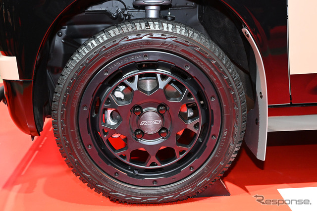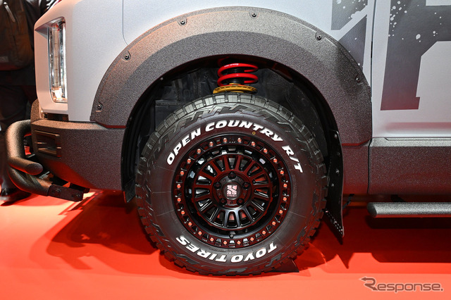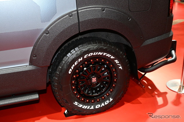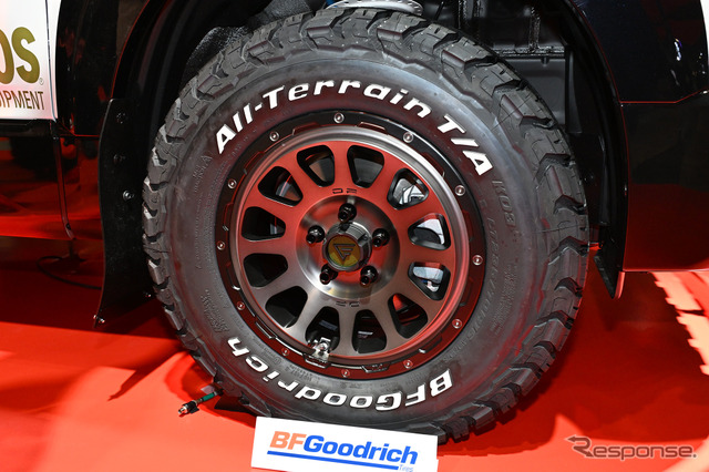 タイヤもBFグッドリッチに、ホイールはデルタフォースのオーバールを採用。そのほかキャリアやラダー、サイドのタープなども装備し内外装もコーディネーションされている。