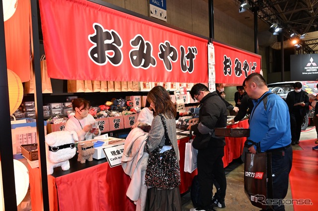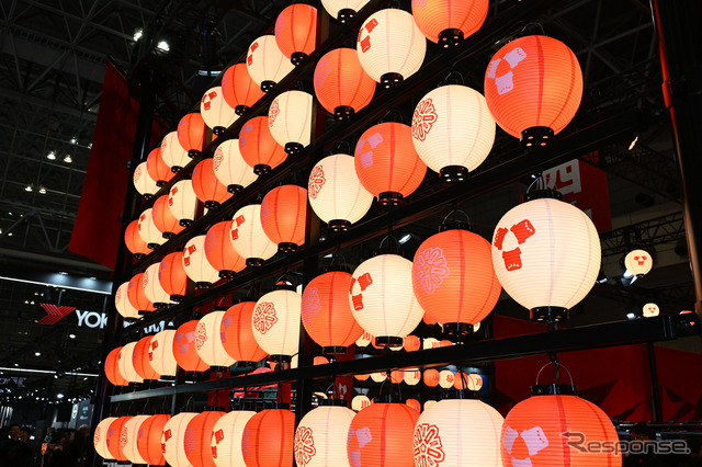 デリカシリーズ一色のまさに“デリカ祭り”となった三菱ブース。「デリ丸。」のお面や提灯で飾られたブースのコンセプトは「デリカ祭り~遊び心を解き放て~」だ。三菱国内営業本部 国内商品戦略部 車種統括グループの大舘柊太さんは、「明らかにほかのブースとは雰囲気が違うでしょう。新しいデリカシリーズを一斉に並べて盛り上げたい、まさにお祭りです」と笑う。
