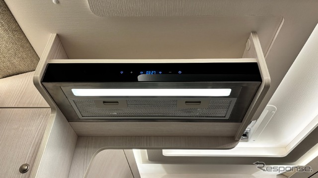 LED付レンジフードはLEDライトを備え、調理中の視認性を向上させた。清水タンクは63L、排水タンクは75Lの容量を確保している。