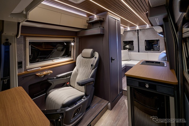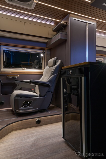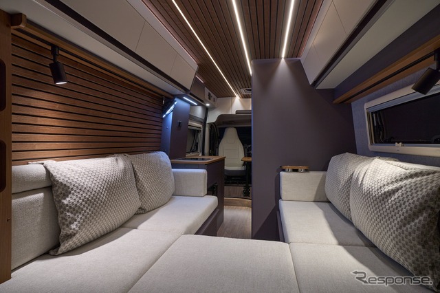また、セカンドシートの背後にマルチルームを配置しており、トイレ、収納、着替えスペースなど多用途に対応可能だ。内装は欧州車を思わせる上質な素材と配色で仕上げられている。