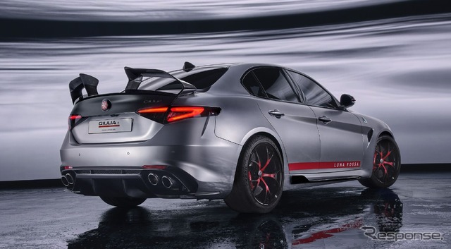 この特別モデルは、一連の技術的改良と専用カーボンファイバーキットにより、史上最もエクストリームなジュリア クアドリフォリオとなった、とアピールする。空力効率の傑作として、量産版の最大5倍のダウンフォースを発生させながら、驚くほど低い抗力値を維持しているという。ボンネットの下には、象徴的な2.9リットルV6ツインターボエンジンが520hpを発揮し、機械式セルフロッキングディファレンシャルと組み合わされている。