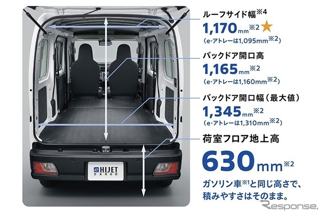 齋藤氏は「現行ハイゼットカーゴの選ばれる理由の1位が積載性だ。その能力は維持した」という。ガソリンモデルから荷室の寸法、最大積載量(350kg)に変更がないため、乗り換えもスムーズだ。