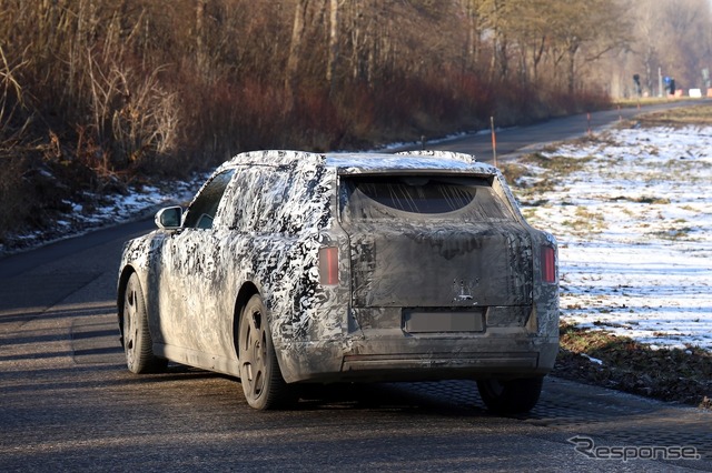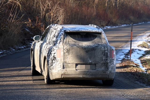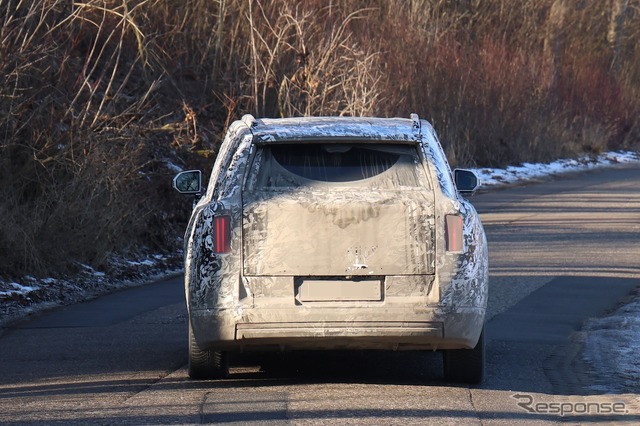 プロトタイプを見ると、カリナンやファントムと非常によく似たデザインが見て取れる。高いルーフ、Aピラーの傾斜、角張ったフロントエンド、そしてテールライトは、どれもカリナンの特徴を如実に表している。