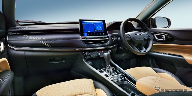 インテリアには、限定車専用色のテュペロブラウンとブラックのスタイリッシュなコントラストが上質な空間を演出する。センターコンソールにはジープ誕生の年「1941」を刻み、ブランド85周年に通じるディテールを取り入れている。