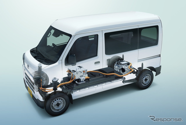 今回のBEVモデルは、トヨタ、スズキ、ダイハツの3社が各々の技術を持ち寄り共同開発したBEVシステム「e-SMART ELECTRIC」を搭載。後輪駆動方式で最高出力47kW、最大トルク126N・mの電動モーターを備え、静かな走行と高い加速性を実現。大容量36.6kWhの薄型リチウムイオンバッテリーを床下に配置し低重心化と車体剛性を高めている。