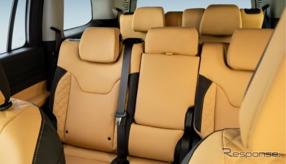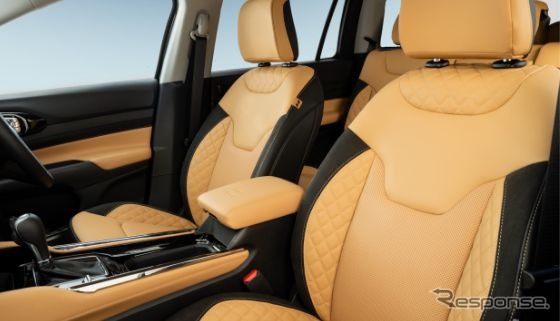 今回の限定車には、ブラックスエード調のインストルメントボルスターを採用。シートデザインは、ジープのフラッグシップモデル『グランドチェロキーL』の「サミット リザーブ」を彷彿とさせる上質な仕上がりとなっている。