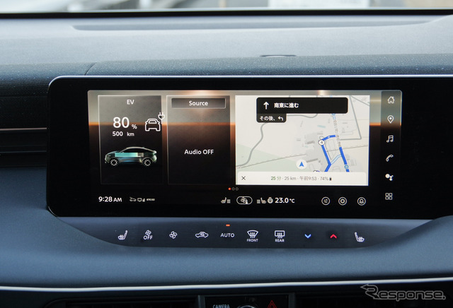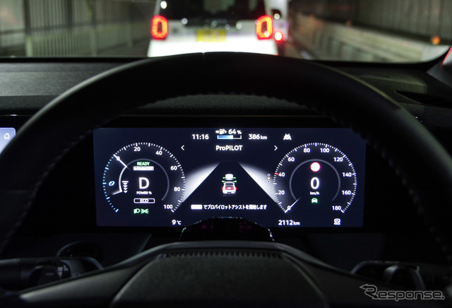 前走車との車間を回生ブレーキによる滑らかな減速で制御する「インテリジェント ディスタンスコントロール」を新採用し、混雑する道などでのドライバーの負担を軽減しつつ滑らかな走りを実現しているのも注目だ。また、高速道路でハンズオフ(手放し運転)できる「プロパイロット2.0」も新型リーフに最適化して搭載している。