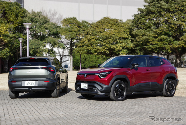 2026年1月、政府のEV補助金が129万円に引き上げられたタイミングで、2台のEVが販売を開始した。スズキ『eビターラ』と日産『リーフ』。どちらもクロスオーバーSUVタイプで、ボディサイズも近い。スペックや航続距離、充電性能はどう違うのか? 走行性能も含め、比較してみよう。
