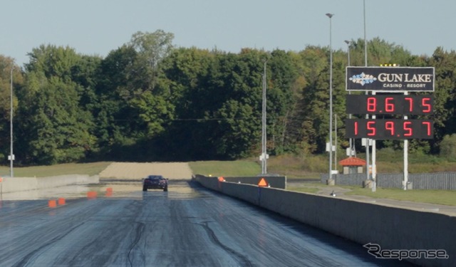 コルベットZR1Xは米国ミシガン州のUS131モータースポーツパークで検証テストを実施。プレップ処理された路面で1/4マイル(約402m)を8.675秒、時速256kmで走破した。この記録は市販タイヤを装着し、通常のガソリンを使用、全米50州で合法なエンジン設定のまま達成された。