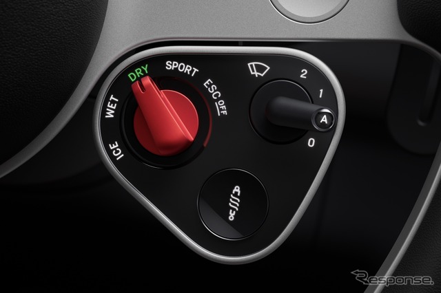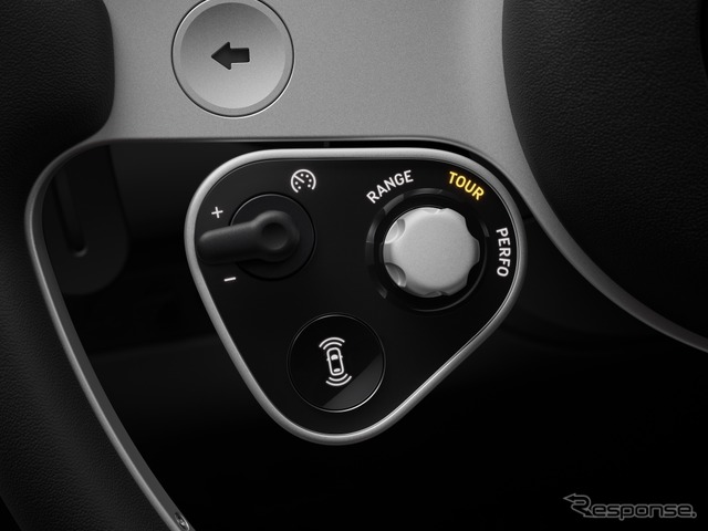 ステアリング・ホイール……3本スポーク形状。100%再生由来のアルミニウム製だ。19個のパーツ構成で標準より約400g軽量化された。スイッチ類は2つのアナログ・コントロール・モジュールに整理されている。