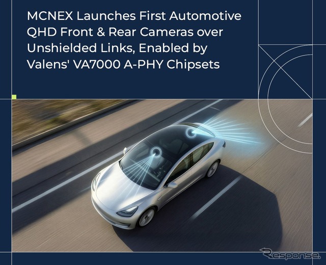 MCNEXとバレンズセミコンダクターは2月24日、バレンズのVA7000 A-PHYチップセットを搭載し、非シールドツイストペア(UTP)または低コストの同軸ケーブル経由でQHD(2560×1440)映像を伝送する高解像度フロント&リア車載カメラの新ファミリを共同開発したと発表した。