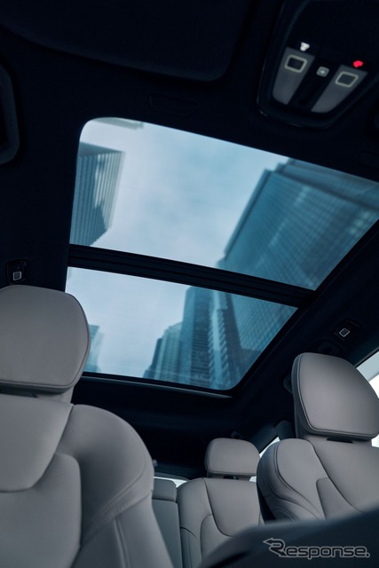 本モデルには、チルトアップ機構付電動パノラマガラスサンルーフを特別装備し、スカンジナビアンデザインのインテリアにさらなる明るさと開放感をもたらす。さらに、通常モデルとは異なる専用デザインの19インチアルミホイールを採用し、ダイヤモンドカット面とブラックのコントラストが足元を引き締める。
