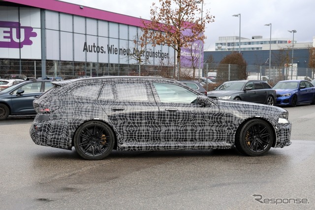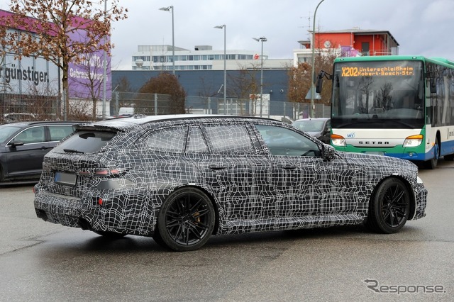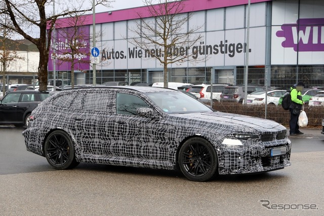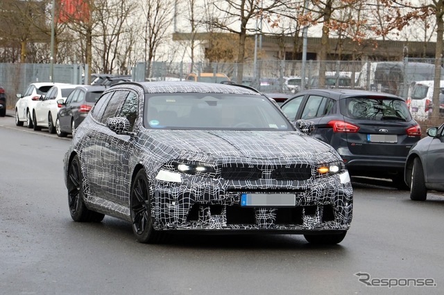 BMWの最強ワゴン『M5ツーリング』、新型の車内を初スクープ! 新ステリング形状に注目