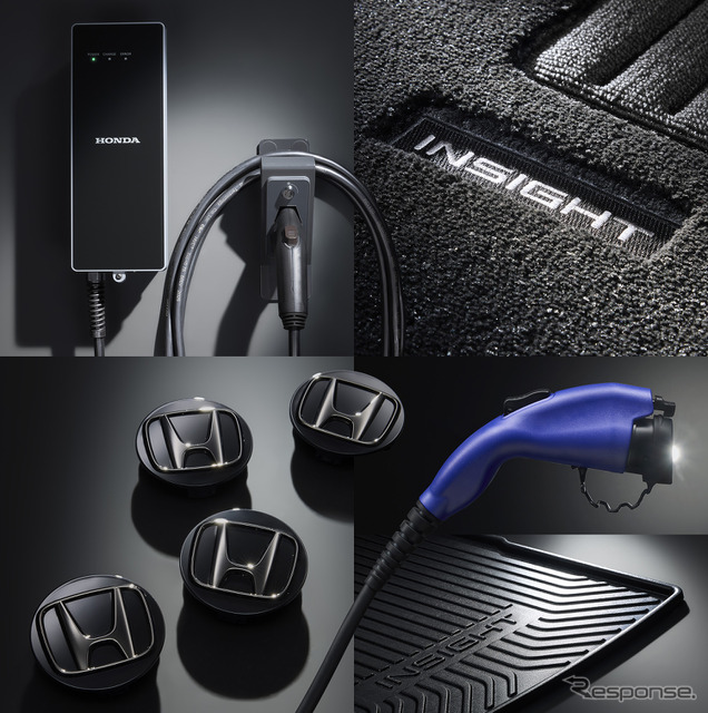 このほか、プレミアムタイプのフロアカーペットマット、ブラックHマークのアルミホイールセンターキャップ、防水タイプのラゲッジトレー、張り出しを抑えインサイトのデザインに調和するドアバイザーなど、内外装の質感向上や実用性を高める商品を揃える。