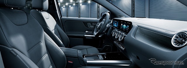 インテリアには、通常GLA 35に設定のないインテリアトリム「ブラックオープンポアウッドインテリアトリム」を採用。内装シートもブラック(本革)でカラーを統一し、上質さに磨きをかけた室内空間に仕上げている。