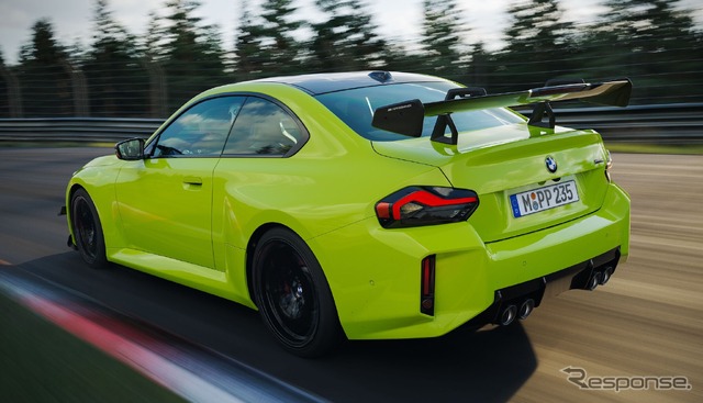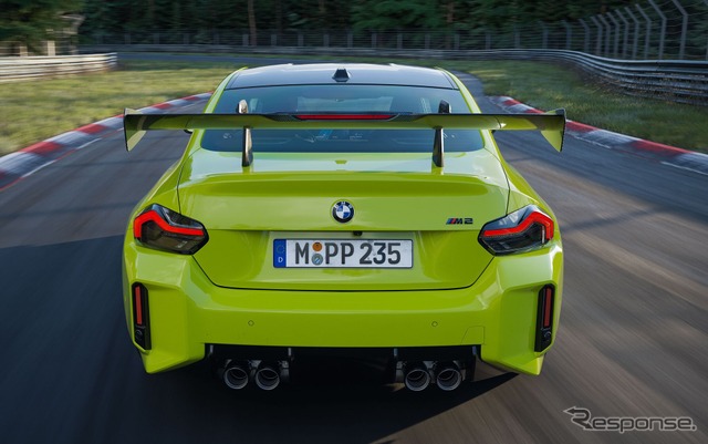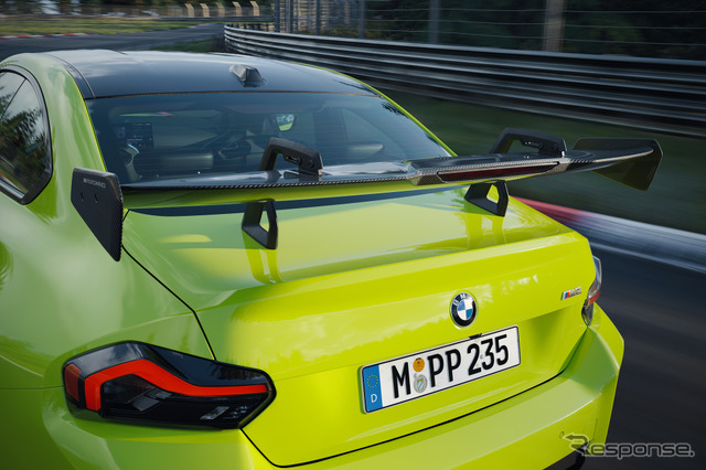 また、『M2 CS』向けには新たにM Performanceエキゾーストシステムも用意。最高出力390kW(530ps)の直列6気筒エンジンの排気ガス経路を最適化し、特徴的なサウンドを強化する。エキゾーストシステムには、カーボンとチタン製のM Performanceテールパイプトリムがオプションで用意され、M2 CSのリアに独特の外観を与える。軽量化も徹底されており、標準コンポーネントより約8kg軽量化されている。