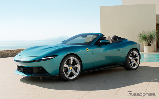 フェラーリは3月12日、新型『アマルフィ スパイダー』を発表した。フロントミッドに搭載されたV8ツインターボエンジンを搭載する2+スパイダーの新型にSNSでは「美しいし、カッコいい!」「デザインと色がとても似あってて見惚れた」と話題になっている。