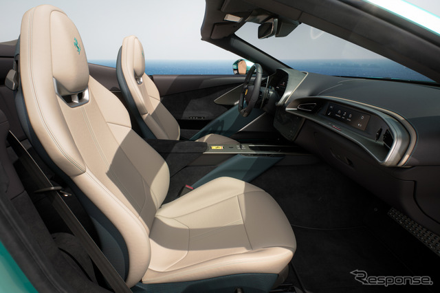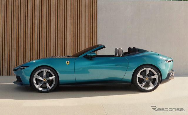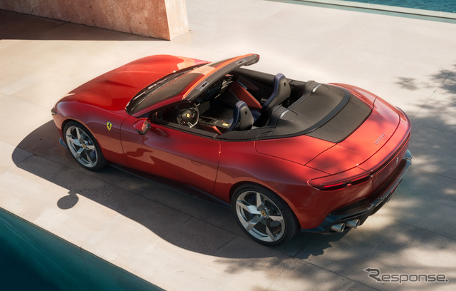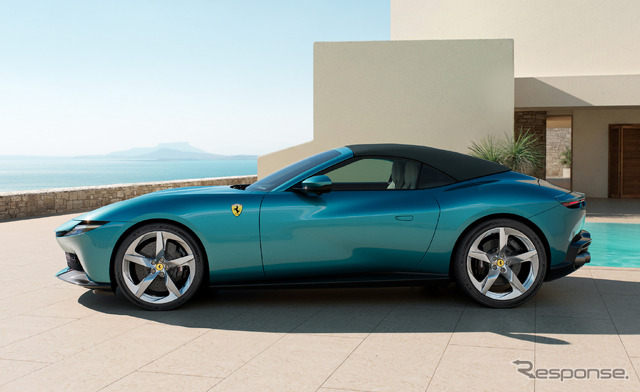 新型車は、フェラーリのパフォーマンス志向のライフスタイルを体現するオープンエアモデルとして開発。テーラーメイドまたはテクニカルファブリックのソフトトップは13.5秒で開閉でき、最高速度60km/hまでの走行中でも操作可能だ。コンパクトな車体寸法と大容量のラゲッジスペースにより、クラストップレベルの実用性を実現している。