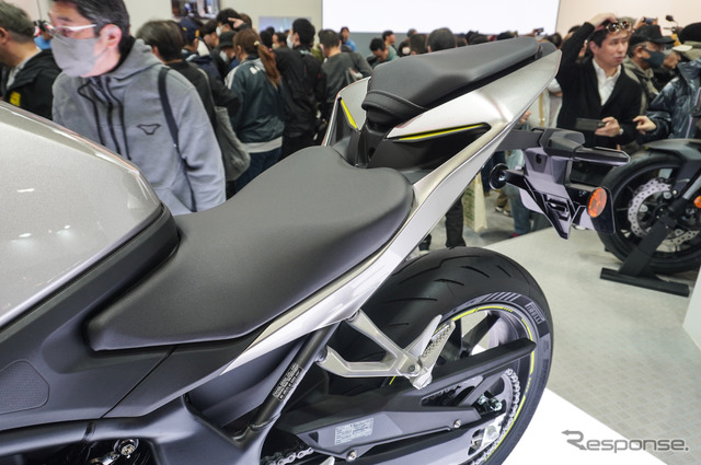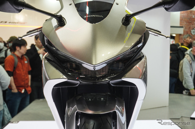 そしてもう一台、CBR400R FOUR E-Clutch Conceptは、「New Generation Sport “普段使いから得られる高揚感”」を開発コンセプトに、「走りそのものに集中するシーンで得られるより一層の充実感」を目指した。金属を削り出したようなソリッドな面表現を取り入れたフルカウルモデルで、近未来的な灯火器のデザインとあわせて最先端マシンの持つ高い性能を表現している。