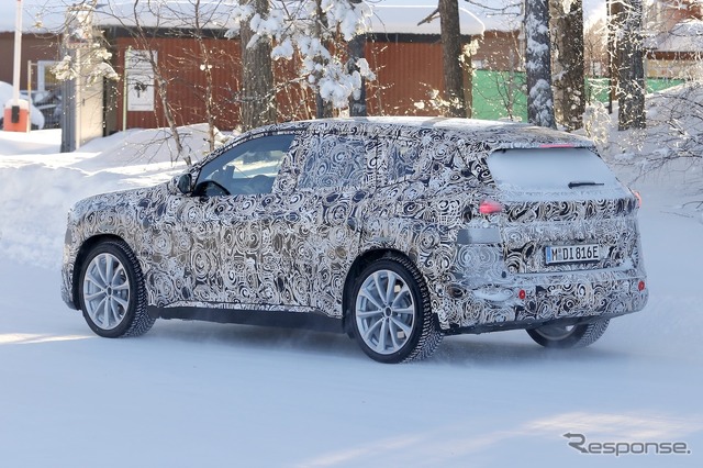 スカンジナビアで捉えた最新プロトタイプから確認できたのは、従来型の大型キドニーグリルが廃止され、iX3と同様の小型の縦型グリルに変更されている点だ。このグリルは新型『X5』にも採用される予定だ。