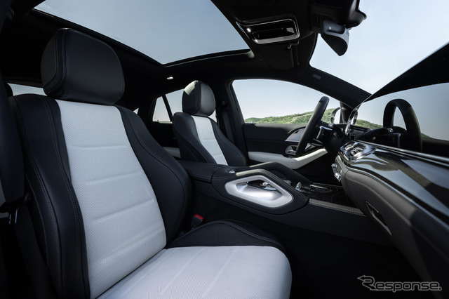標準装備の「MBUXスーパースクリーン」は、3枚の12.3インチ(31.2cm)ディスプレイを大型ガラス面の下に一体化し、運転席から助手席まで車内全幅にわたって広がる。オプションの3Dドライバーディスプレイはボタン一つで立体的な表示に切り替えられる。ナビゲーションにはグーグルマップの技術とメルセデス・ベンツのユーザーインターフェースを組み合わせたシステムを採用。GLEクーペに初めて搭載される「MBUXオーグメンテッド・リアリティ・ヘッドアップ・ディスプレイ」は、矢印やレーン案内などをフロントガラス越しに路面上に投影する。