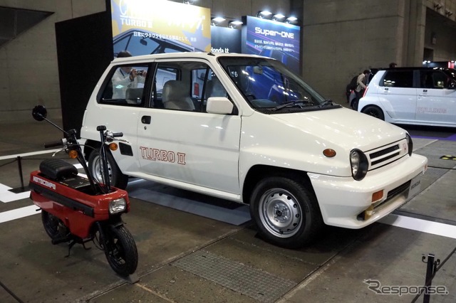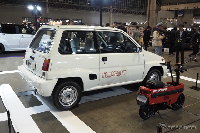 幕張メッセには標準仕様と、エアロパーツや「BULLDOG」のステッカー(かつての「TURBO II」に合わせた書体)を身にまとった用品装着仕様が展示されている。かたわらには“ブルドッグ”の愛称で呼ばれた『シティ・ターボII』も。