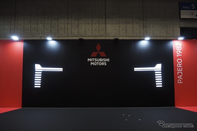 会場でプレスカンファレンスをおこなった岸浦社長は、パジェロの車名は明言しなかったが、「新型クロスカントリーSUV、これは年内に投入する予定だ」と語った。準備は順調に進んでいるという。それがパジェロになるかどうか、という記者からの質問には「今日はその辺は控えたいなと思います」と濁したものの、明確に否定はしなかった。また、三菱ブースの壁には、ヘッドライトのような図形が黒地に白く描かれており、これが新しい“パジェロ顔”になるとみられる。