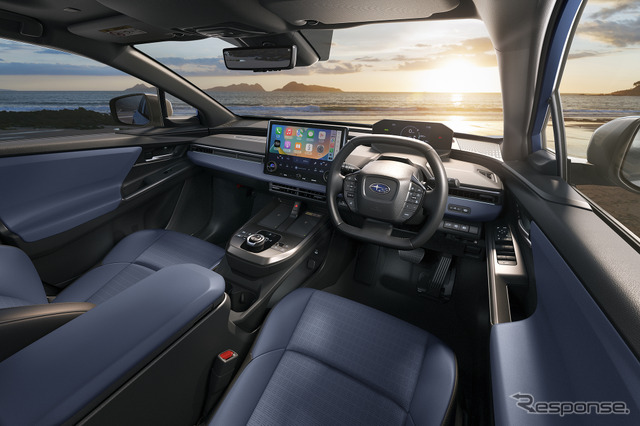 インテリアデザインは、インパネ全体をすっきりとした横基調とし、広さを感じさせる居心地のよいデザインとした。「ET-HS」グレードでは、上質で座り心地の良いナッパレザーを使用した本革シートを採用。また、ブルーを基調としたカラーリングとすることで、SUBARUらしいスポーティなイメージに仕上げている。