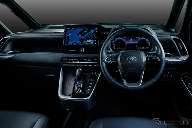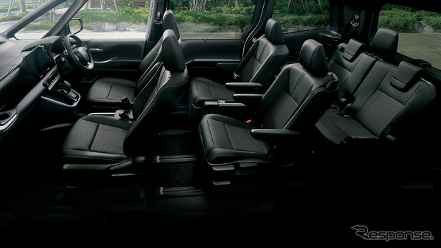 ノアは、S-Z(2WD・7人乗り)などでプロジェクター式LEDヘッドランプ(オートレベリング機能付)に加え、LEDターンランプおよびLEDクリアランスランプ(デイライト機能付)を設定。フロントまわりの意匠変更し、ボディとの一体感を演出。目元を強調するスタイリッシュなデザインとなった。