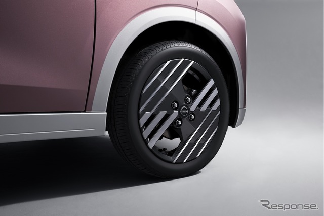 15インチのアルミホイールは、日本の伝統美である水引のテーマを継承しながら、より大きくダイナミックな印象のデザインへと変更された。