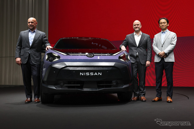 日産自動車は14日、経営再建の“その先”を描く長期ビジョンを発表。新たな商品ポートフォリオが語られる中、その中核モデルとして新型『ジュークEV』が世界初公開された。斬新なデザインを売りにしてきた歴代ジュークだが、新型もまたインパクトあるデザインとなっており、SNSでは「本当にこれを市販するとは信じられない」「すげえデザイン」など注目を集めている。