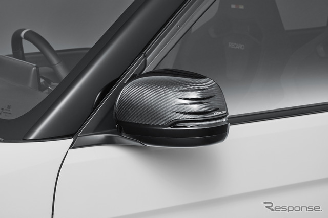 さらに車体の側面を張り出させてシルエットに迫力を加えるフロント・リアのオーバーフェンダー、空力解析によって機能性を追求したドライカーボン製の大型テールゲートスポイラー、カーボンドアミラーカバーも開発中だ。