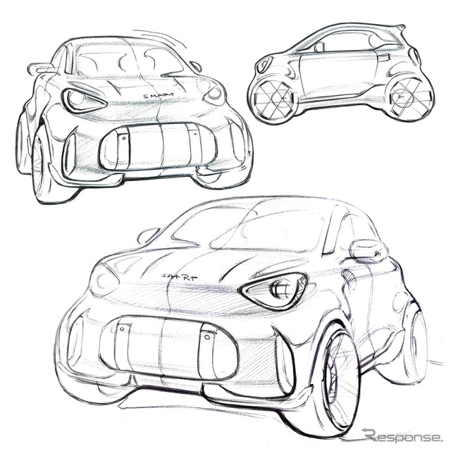 スマートは、2人乗りコンセプトカー「スマート コンセプト #2」のデザインスケッチおよび詳細画像を初公開した。実車は北京モーターショー2026でワールドプレミアされる。
