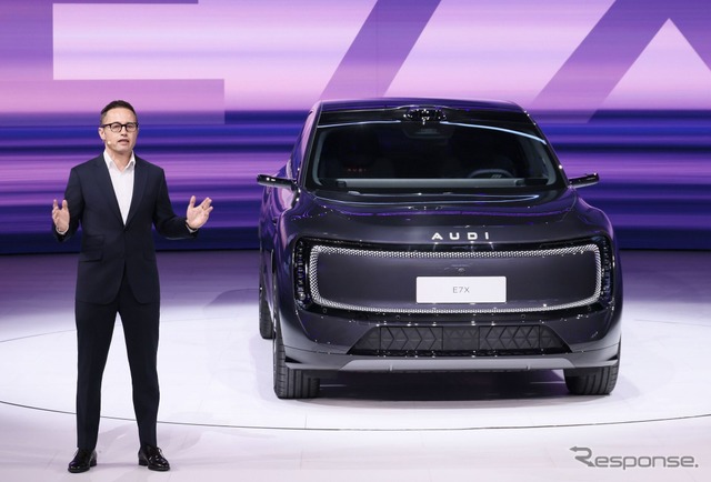 アウディは、中国専用「AUDI」ブランド初のオール電動SUV『E7X』を「北京モーターショー2026」で発表した。中国向けに専用設計し、同ブランドの2台目の量産モデルとして電動プレミアムSUV市場で存在感を狙う。
