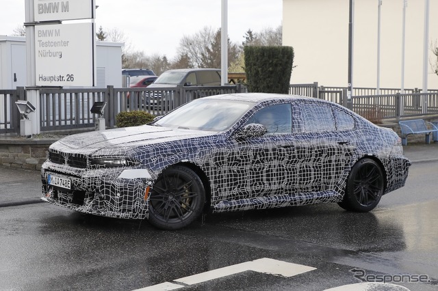 「ノイエクラッセ」はあきらめた? BMW『M5』新型の最新プロトタイプ…スリムなLED採用へ