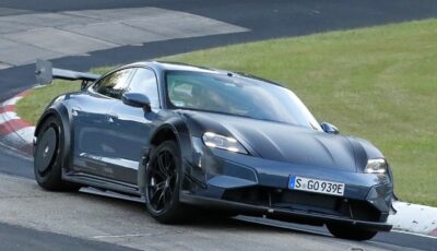7月に目撃されていたポルシェ『タイカン・ターボ GT』改良型の開発車両。このマシンがさらなる高速化を成し遂げ、ニュルブル…